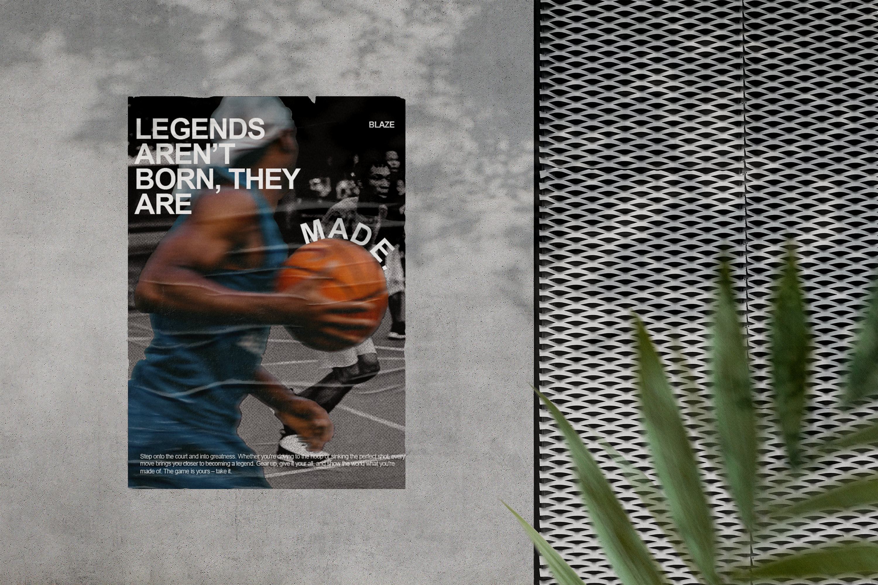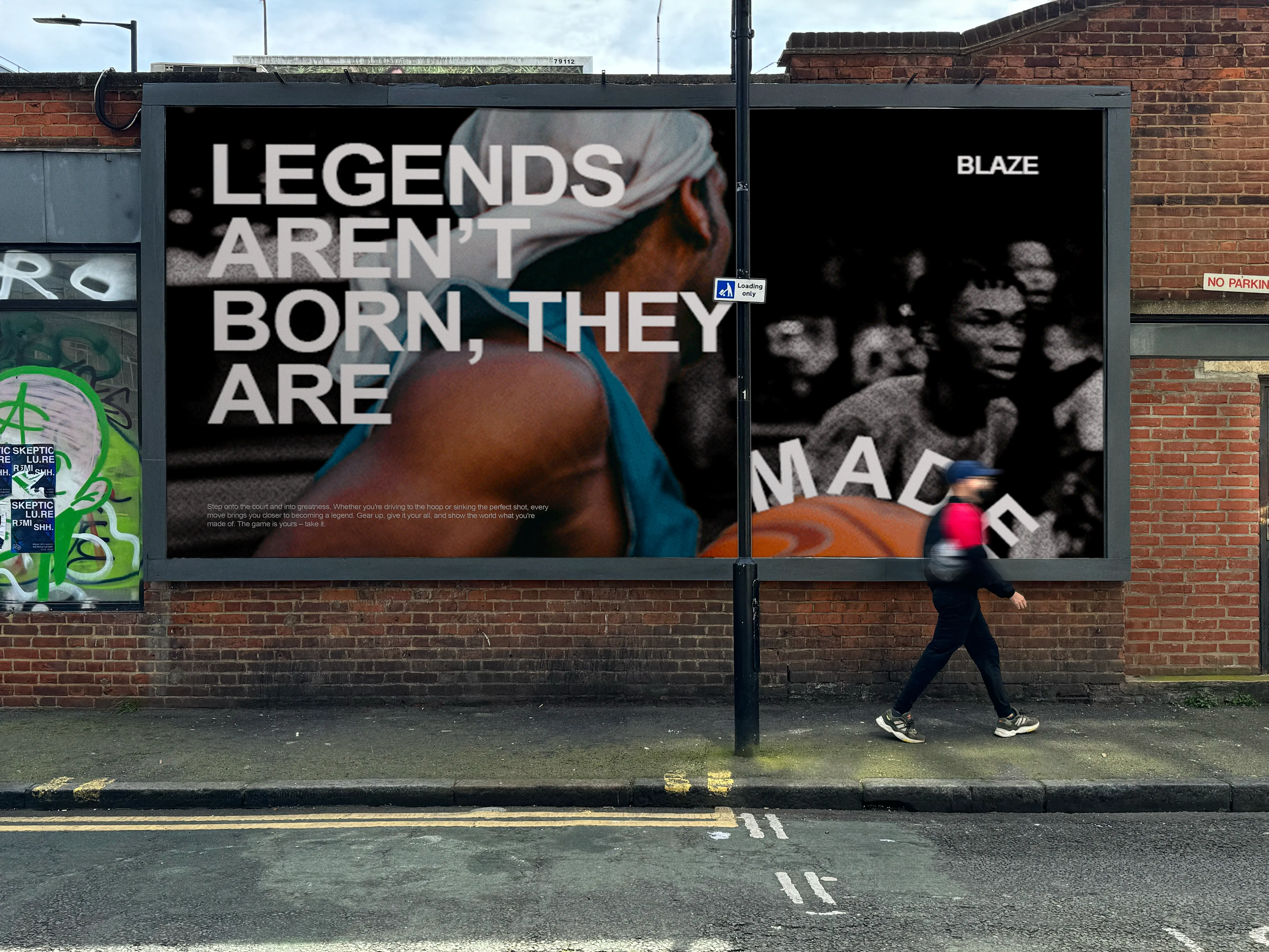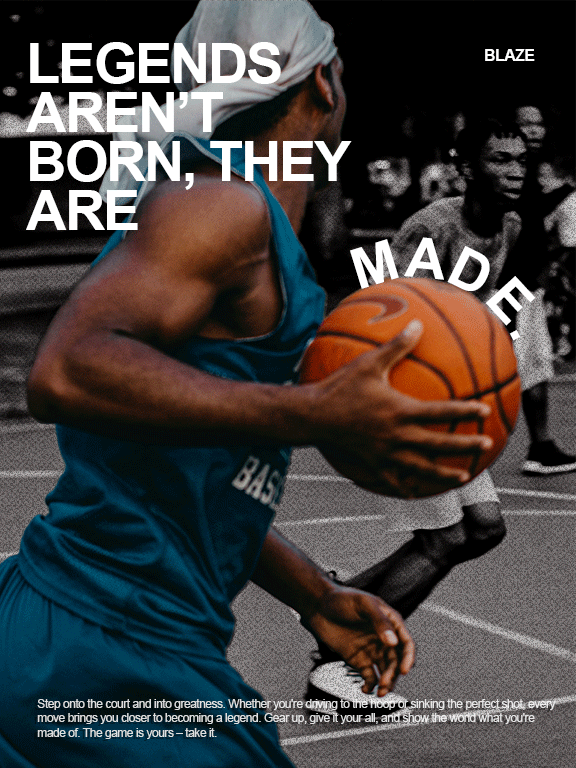 For this project, a flyer AD was designed for BLAZE (Sportswear), capturing the energy and intensity of basketball. The sleek design features bold typography and imagery that highlights powerful dunks and gritty streetball culture. This striking visual piece celebrates the essence of basketball while reinforcing BLAZE’s commitment to performance and innovation.